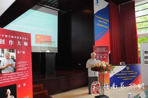 中国工美集团副主任王井春也在活动上致辞,对以孔诺夫先生为代表的俄罗斯联邦大使馆文化中心为中俄文化交流做出的贡献表示高度赞许。同时,也感谢北京俄罗斯文化中心对本次活动的鼎力支持,感谢孔诺夫先生对《中俄大阅兵双龙宝玺》高度评价。