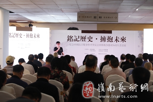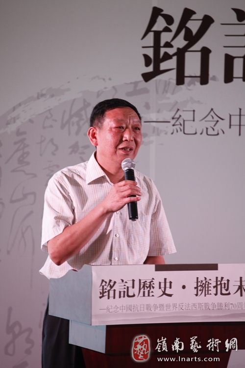金风送爽,秋兰飘香,正逢纪念抗战胜利70周年大阅兵之际,由国学典籍馆与中国民族报社、中国人民大学博物馆、商业金融工作委员会联合主办,北京书法院、丰台区书法家协会、炎黄书画家协会协办的“铭记历史·拥抱未来”主题书画展8月29日在中国人民大学博物馆隆重开幕。这次展览共有70位资深、权威、公认的书画家倾情创作,汇萃于斯,光华尽显,为着同一主题、抱以同一情怀,为大家奉献一场视觉盛宴,用自己最擅长的方式,为祖国、为人民、为纪念抗战胜利献礼。