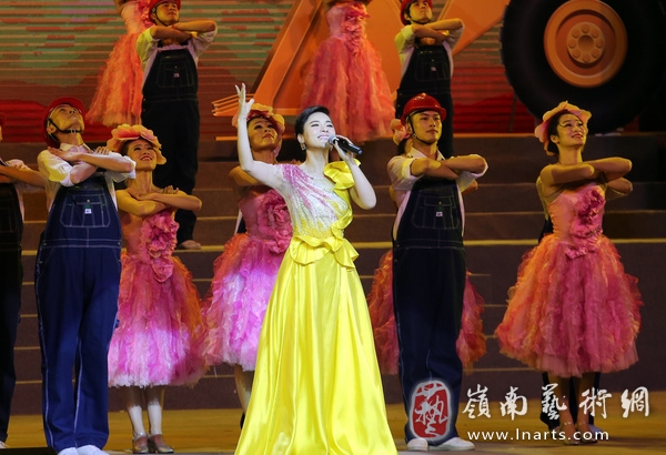 青年歌唱家肖文莉演唱《走出家乡》张文台上将、李新良上将等领导上台与演职人员合影留念