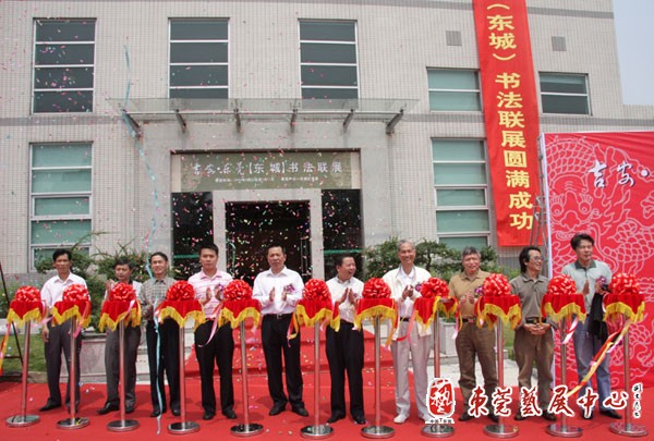 出席活动的吉安市、东莞市东城区两地领导嘉宾为吉安•东莞(东城)书法联展剪彩