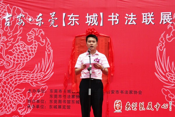 为推进吉安、东城城际之间的文化交流,加深两地书法界的相互了解,促进两地书法艺术的繁荣,由东莞市东城区文化服务中心、吉安市书法家协会、东莞市书法家协会东城分会联合主办的“吉安·东莞(东城)书法联展”4月28日上午在东城展览馆隆重开幕。吉安市广电局副局长、吉安市书法家协会主席冯为民、东莞市文联副主席、市书法家协会主席岑诒立、东莞市文广新局副局长黎寿康、吉安市教育局副局长、吉安市书协副主席郭继国、吉安市永新县人大主任甘立平、中共东城区委委员徐建文、吉安市安福县洋溪镇镇长刘云根、东城区文化服务中心常务副主任康健和来自吉安和东莞书法界、艺术界、新闻界的朋友近200人出席了开幕式。