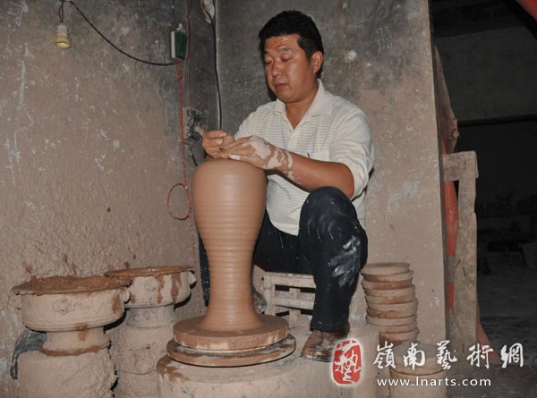 刚步入不惑之年的李胜强接触钧瓷已近二十年,自司法系统“半路出家”转至钧瓷传承的道路上。学艺之初,李胜强就得到了非常系统而纯正的钧瓷艺术学习,他深受中国工艺美术大师杨志影响,重视传统技艺,认真钻研,勤学苦练拉坯技艺、细心对待钧瓷创作的每一个环节和细节。凭借自己的不懈努力,最终有所小成。善于思考钻研的李胜强不放过一切与钧瓷有关的机会,而他那令人称奇的“羽毛釉”正是在这种条件下诞生,既是偶然也是必然。