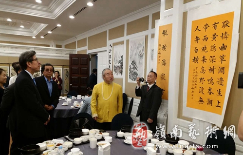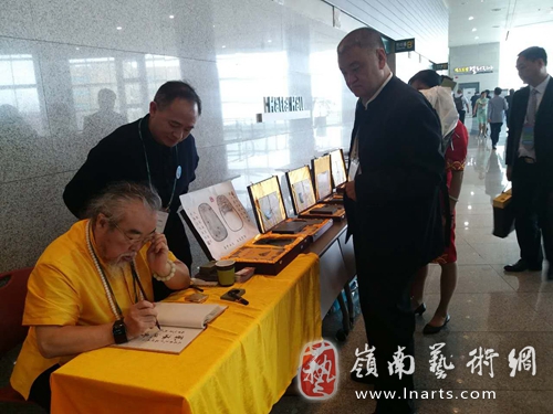 中韩非遗高峰论坛暨逸品神工艺术精品展期间,炎黄书画家协会主席闫锐敏向朴亨埈秘书长,以及出席中韩非遗高高峰论坛的相关领导嘉宾介绍了自己创作的作品。韩国文化遗产国民信托董事长兼韩国博物馆协会名誉会长金宗圭、前韩国著作权委员会委员长庾炳汉、文化部中国艺术产业研究院副院长西沐、中国非物质文化遗产保护协会常务副秘书长华庆,京畿无形文化财铸成匠李完圭、城南艺术局局长李七龙、韩国民匠协会名匠、瓷艺泰斗林恒泽等领导嘉宾及与会专家学者参观后给予了高度的评价。