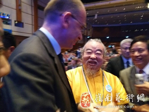炎黄书画家协会主席闫锐敏和意大利前国家总理恩里克·莱塔亲切交流