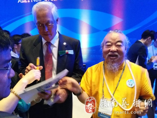 炎黄书画家协会主席闫锐敏和新加坡前总理吴作栋亲切交流