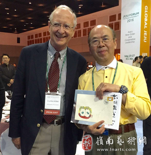 著名陶瓷艺术家华奎与韩国国家博物馆协会会长金宗圭亲切交流