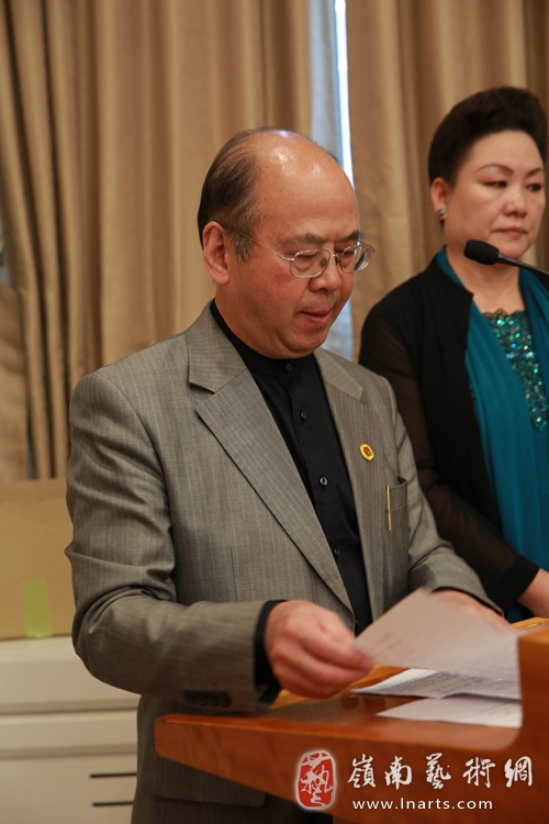 著名陶艺家华奎代表中方艺术家在逸品神工艺术精品展开幕上致辞
