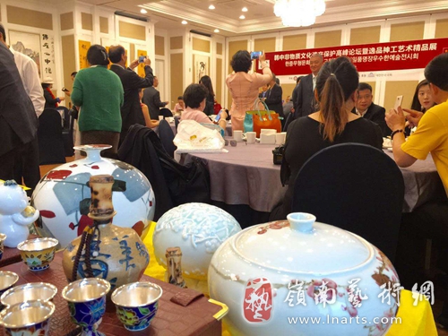 中韩非遗高峰论坛暨逸品神工艺术精品展期间,世界儿童艺术馆馆长华奎向国会秘书长朴亨埈阁下以及出席中韩非遗高高峰论坛的相关领导嘉宾介绍了自己创作的陶瓷艺术品。韩国文化遗产国民信托董事长兼韩国博物馆协会名誉会长金宗圭、前韩国著作权委员会委员长庾炳汉、文化部中国艺术产业研究院副院长西沐、中国非物质文化遗产保护协会常务副秘书长华庆,共好汇主席杜德利、京畿无形文化财铸成匠李完圭、城南艺术局局长李七龙、韩国民匠协会名匠、瓷艺泰斗林恒泽等领导嘉宾及与会专家学者参观后给予了高度的评价。