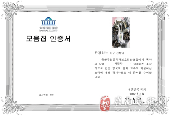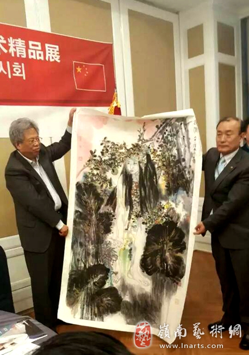 文化部中国艺术产业研究院副院长西沐向韩国国会赠送胡清菘馆长作品