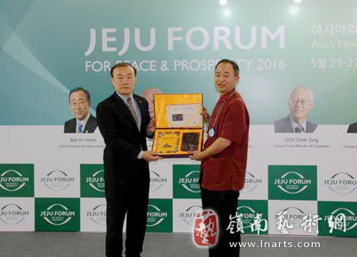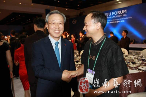 制砚大师王安平与出席济州论坛的国际政要亲切交流