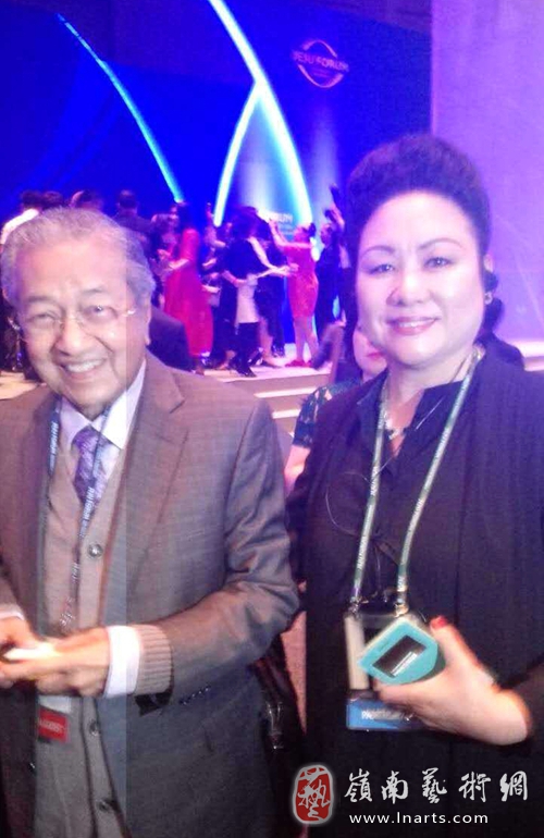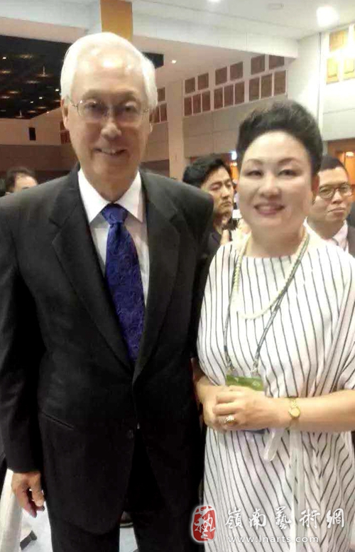 中韩非遗高峰论坛组委会常务副秘书长迟静杰和新加坡前总理吴作栋在一起