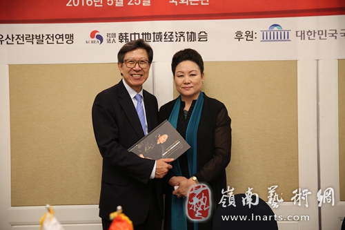 中韩非遗高峰论坛组委会常务副秘书长迟静杰和韩中地域经济协会的会长李相基