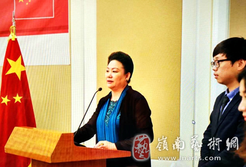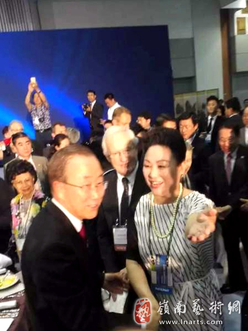 中韩非遗高峰论坛组委会常务副秘书长迟静杰和联合国秘书长潘基文