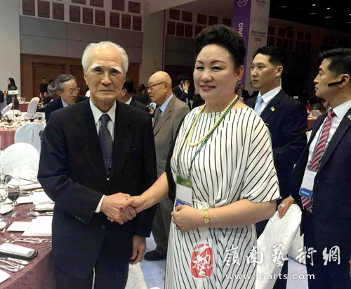 中韩非遗高峰论坛组委会常务副秘书长迟静杰和日本前首相村山富市