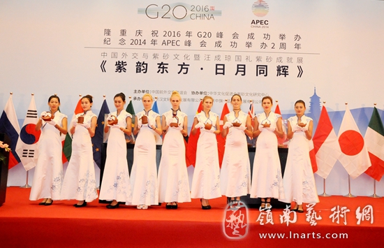 2016年9月20日,由中国前外交官联谊会主办的《紫韵东方·日月同辉》中国外交与紫砂文化暨汪成琼国礼紫砂成就展,在北京怀柔雁栖湖APEC会议中心隆重举行。据悉,主办方邀请了杭州G20峰会与会国二十国驻华使节和联合国代表,出席本次活动的有外交界、中国工艺美术界、宜兴市等社会各界领导及国礼紫砂大师汪成琼出席了本次活动。