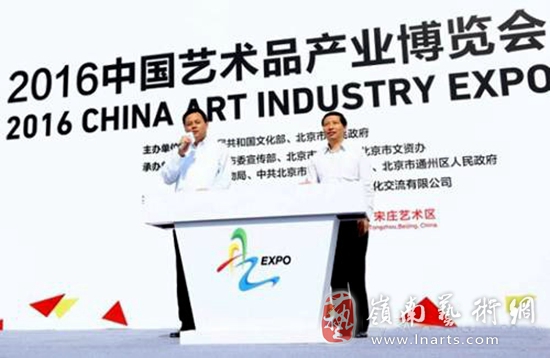 文化部党组成员、部长助理于群、北京市委副秘书长郭广生共同启动2016年中国艺术品产业博览会