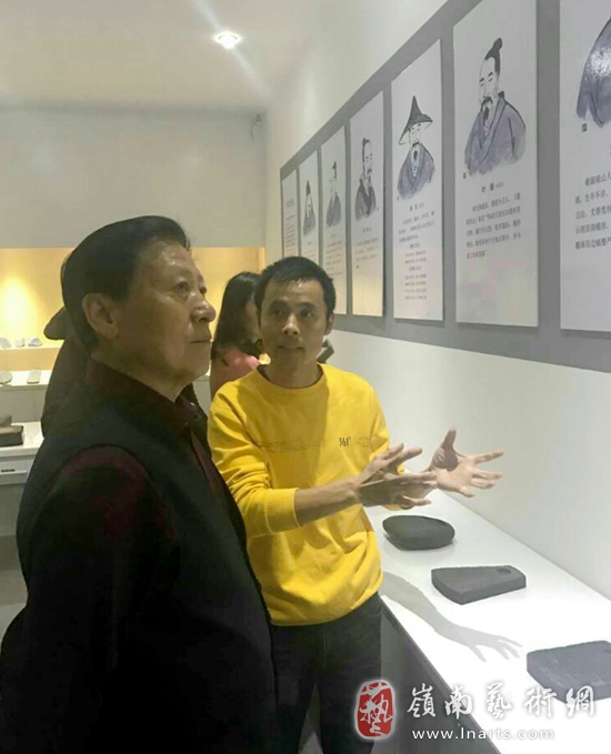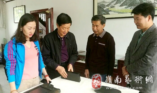 2016年10月14日,全国政协委员、中华炎黄文化研究会砚文化联合会名誉会长刘红军,执行会长兼秘书长唐本高,高级顾问、中国工艺美术大师、国家非遗传承人王祖伟,副会长陈庆强,常务副秘书长兼外联部长阴巍、宣传部长黄中、秘书张汉荣等一行7人,在江西九江市考察完金星砚后,驱车前往江西婺源考察龙尾砚,与胡中泰老师、寒山老师、潘小萌老师等歙砚专家交流砚文化,实地考察砚台展馆,观摩几位老师作品,考察圆满顺利,达到预期目的,取得良好效果。