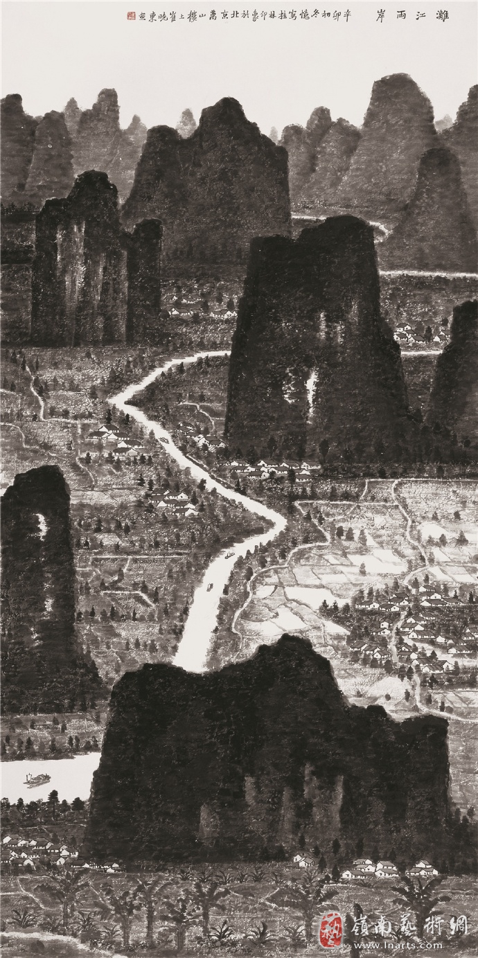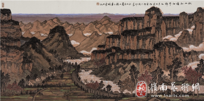 不仅如此,崔晓东山水画的价值与意义,是他把20世纪以来我国学院教育中逐渐形成的新写实主题性美学思想和创作原则援引入传统山水画的表现语言,李琦先生的《主席走遍全国》,曾是一幅家喻户晓的肖像画, 这幅画凝聚了我们民族在特定历史时期的一种伟大情感。作品中蕴涵的“为一种伟大情感树碑立传”的美学精神,成为崔晓东山水画风格赖以形成的精神支柱和美学灵魂。并使之在形态学上发生合古今于旦暮的新变化。这是近百年来中国山水画除崔晓东尚无人涉及的领域。