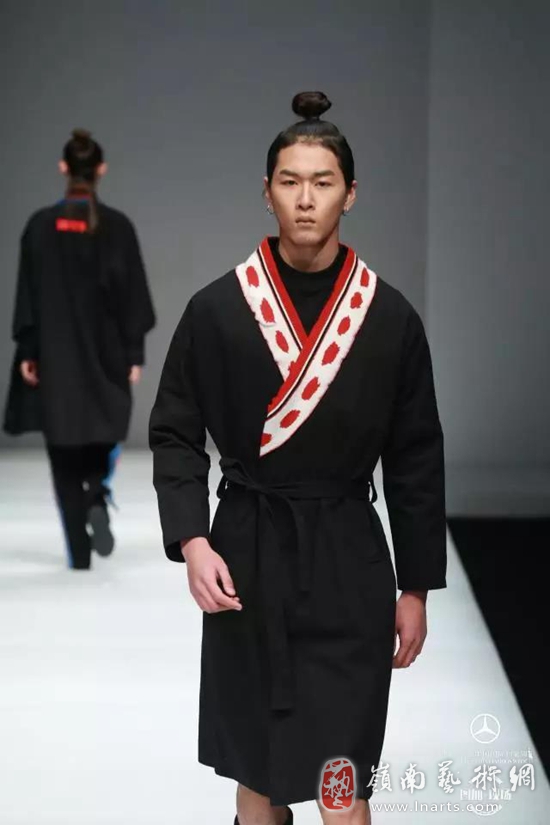 设计师吴焕然从艺术家的宇宙观出发,回归中国文化本源,解读道家思想与艺术时尚的融合。本次秋冬系列以中国红、黑、白为核心配色,摘选汉服中的交领右衽、褒衣广袖、系带隐扣等元素,进行时尚化改造。纵观中国国际时装周,这种中国原创和东方美学赋予了时尚独特的气质,从单纯的服装展示进入文化输出。
