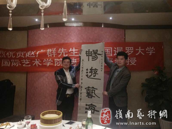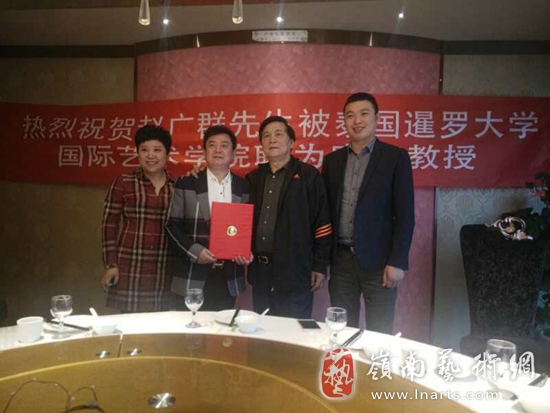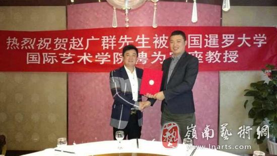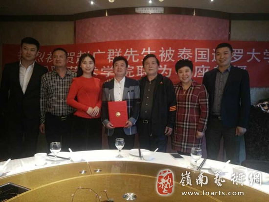 2017年4月22日,泰国暹罗大学国际艺术学院聘请著名相声影视演员赵广群先生为客座教授,著名经纪人、京剧表演艺术家麒派传承人郭建华;著名影视演员夏誉轩;中国非遗艺术设计研究院理事会秘书长黄中等众多好友到场表示祝贺! 目前,泰国暹罗大学国际艺术学院客座教授有:齐秦、陈道明、金巧巧、马德华等知名人士。