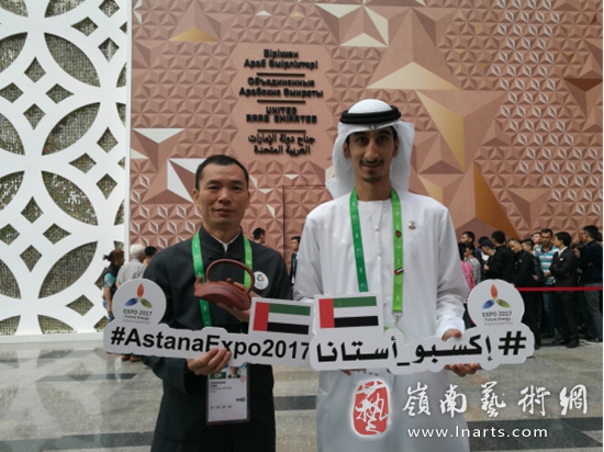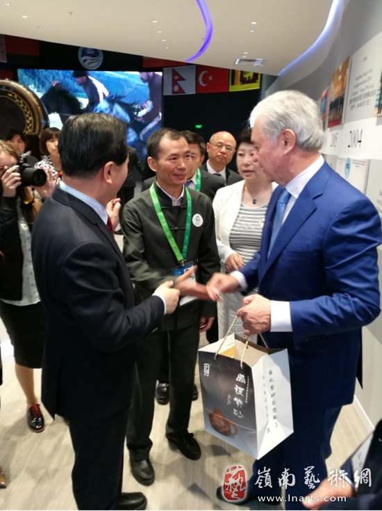 10日,在哈萨克斯坦首都阿斯塔纳的专项世博会中国馆正式开馆。哈萨克斯坦驻华大使努雷舍夫、哈萨克斯坦-中国贸易促进协会会长哈纳特、中国贸促会副会长王锦珍、阿斯塔纳世博会国家公司董事长叶西莫夫、ITER组织总干事伯纳德·比戈、中国电影集团公司董事长焦红奋、中国紫砂艺术家汪成琼等嘉宾出席了开馆仪式。仪式结束后,由汪成琼先生以“一带一路”为主题创作的《紫韵东方·福临五洲》紫砂壶被中国馆收藏,并由中国政府代表王锦珍赠送给了贵宾们,中国紫砂再次成为历史的见证!