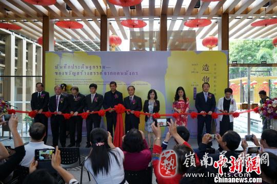中新网曼谷6月14日电 (温丽娟)“中国非物质文化遗产文化周系列活动”之一的“造物记”展览14日在曼谷中国文化中心开幕,泰国前副总理、泰中友好协会会长功·塔帕朗西,中国驻泰国大使馆文化参赞陈疆等中泰嘉宾出席开幕式。