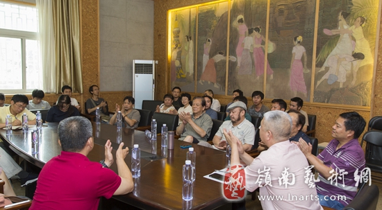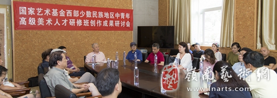 在结业展展览期间(6月28日上午),学院领导和研修班师生召开了创作研讨会,共同探讨培训中的收获与体会,总结经验、交流心得。美术学院院长殷会利教授主持了本次研讨会。他在发言中肯定了学员的学习成果,对展览的作品给予了高度的评价,也从学术的高度提出了珍贵的意见。他指出,中央民族大学美术学院是少数民族美术的高等教育基地,对民族美术的传承和人才的培养有义不容辞的责任。他强调,学院将继续办好西部少数民族高级美术人才的研修班,将之做成一个有口碑的品牌,培养出更多的少数民族地区重要的“作者群”。美术学院也将成为学员们永远的母校,为他们提供更多的民族美术创作交流的平台和机会。
