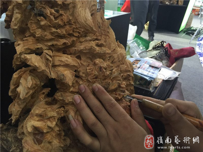 今年五月,韩浩文的木雕根艺作为参展成员参加深圳市文博会,
