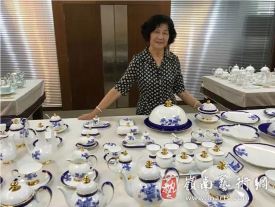 2016G20杭州峰会国宴瓷“国色天香”成品与画面总设计师嵇锡贵合影