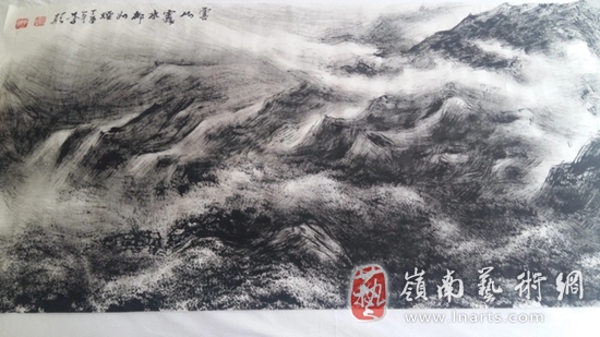 李颠先生的焦墨山水,在中国传统焦墨山水画的笔墨、章法、画势、意境的基础上,突破了黑白两极的极限,不但画出了两极之间的灰色,而且还画出了白云和流水。那白云是有厚度、有生命、有香气的;那流水是有性情、有声响、有故事的。总之,它们都是活生生的,都是自自然然的,仿佛是本来就有的。