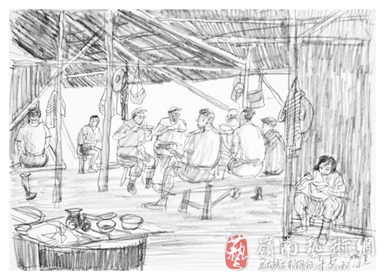 观众们在介绍姚奎先生的照片中,看到了他吃苦耐劳、风餐露宿的创作情景。展览中有一部分是他在湖北干校艰苦的劳作之余创作的速写、水粉与大幅油画,确是难能可贵的时代记录,给人印象颇深。