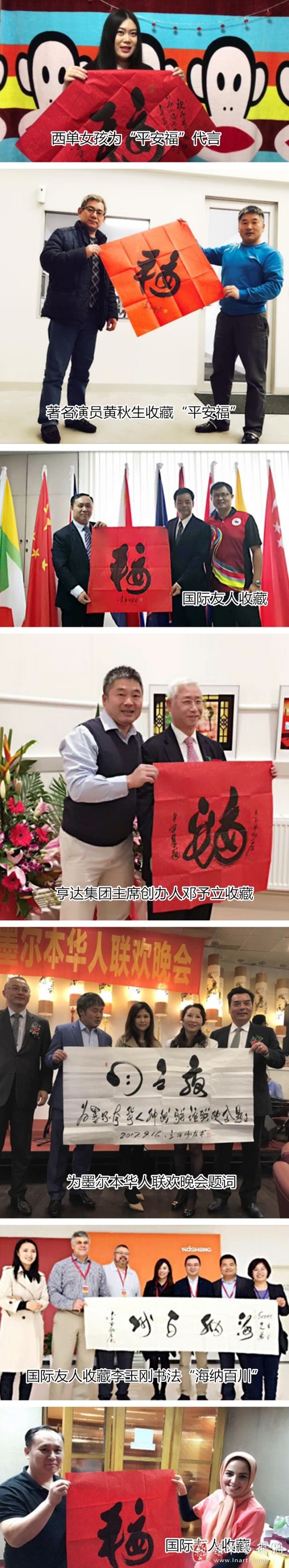 李玉刚独创的“平安福”荣获国家版权局版权登记保护。其书法作品深受艺术界收藏界好评,作品被诸多艺术馆、名人明星、国外友人收藏。