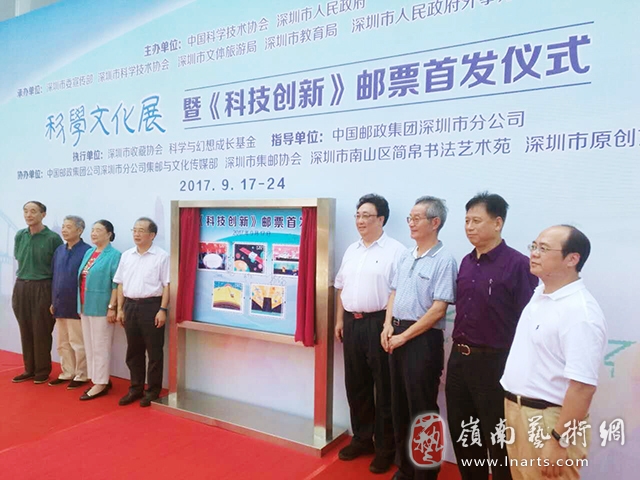 为纪念本次活动,作为执行单位的深圳市收藏协会,特设计制作了个性化邮票、纪念戳、纪念封、科技名言书法明信片、纪念张、藏书票、邀请柬等纪念品,在开幕式上和展出期间全部免费发放给观众。(陈健)