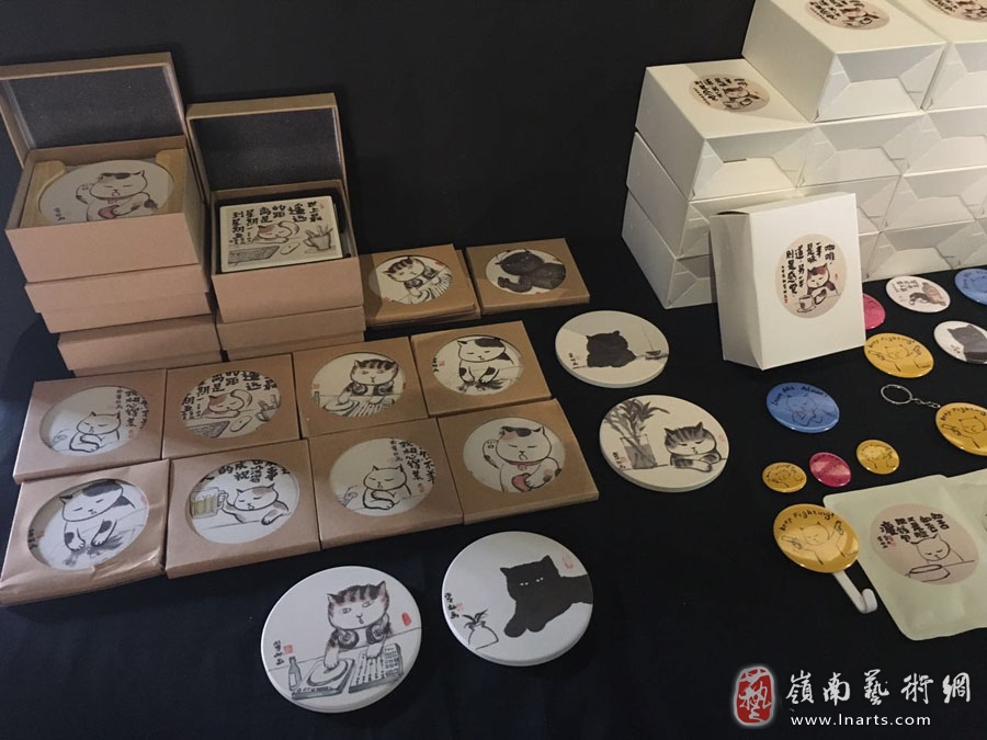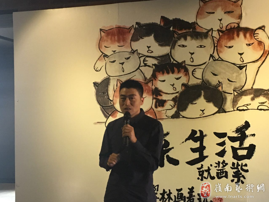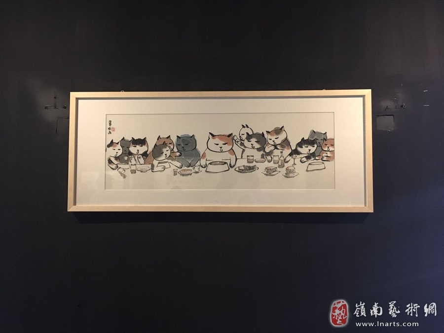 可以看到,画展中的猫咪各个活灵活现,形态好似人类模样,尽显人类生活百态。这些猫时而憨笑可掬,时而慵懒可爱。透过这些猫,也体现了创作者的心路历程及人生故事。