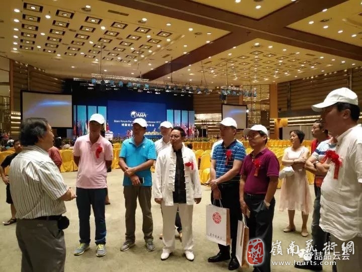 主办方中远海运博鳌有限公司党委书记洪文兴、中远海运博鳌有限公司旅游运营管理中心刘炳和副总经理、喆品会创办人韩斌先生、喆品会合伙人冀岩女士和来自台湾的漆艺大师杨丰诚老师、美籍华侨甫体书法刘秋甫老师、中国国画大师牡丹王蔡天涛老师、中国书画名家王行书院长等艺术大家以及南方网主编杨丽女士及贵宾参加并出席本次艺术展活动开幕式。