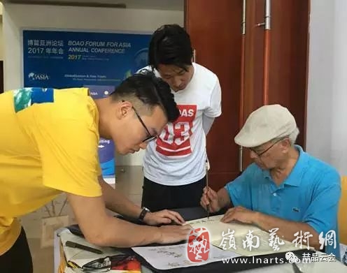 艺术无国界,艺术需要大胆创新。刘玉甫老师的书画深受来自深圳的两位美术和摄影专业的大学生的追捧与亲睐,他们向老艺术家求签名鼓励。