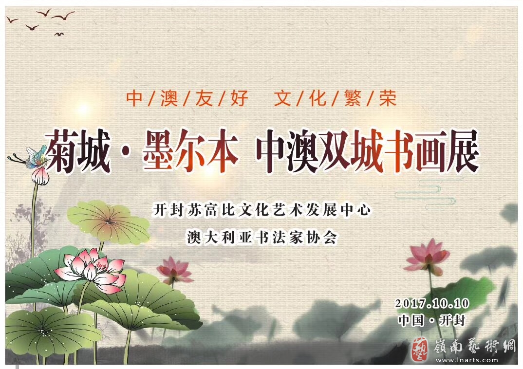 十月十日下午两点 菊城·墨尔本 首届中澳双城书画展在开封市民之家11楼胜利开幕!此次前来的宾客有西区张顺堂书记、 政协书画院院长郭欣 、澳大利亚尤本林主席、及远道而来的朋友,和开封的书画艺术家们。据悉部分老师作品将在11月10日送往澳大利亚墨尔本参展。