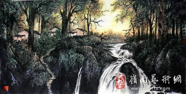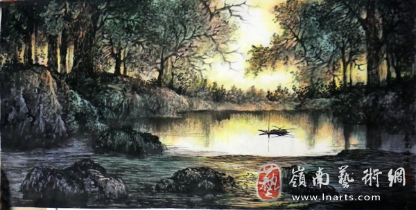 有人说王焕波崇尚李可染先生“废画三千”的苦学精神,我想此言定然不虚,没有多年笔耕不辍、深入生活自然的,在崇山峻岭、沟壑峡谷中无数水墨对景写生的训练,怎能有如此贴近自然的笔墨承载。同样没有对五代两宋以来传统山水高峰,最大限度的深入的探险,也就没有其绘画对“人与自然精神高度统一”的认识。更何谈其画卷中“天光乍现”的旖旎景象呢?