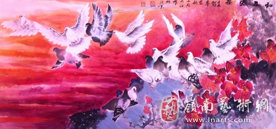 笔墨当随时代,何秋静先生是一位善于观察生活,用画笔深入社会、记录生活的艺术家;其作品气象郁勃,清新自然,笔法灵活多变,水韵墨彰,作品《和平署光》、《和平盛世》气势宏大,深沉厚重,作者用文思与诗意赞颂盛世中国蒸蒸日上的繁荣景象,用笔墨描绘亿万人民生活和谐富强、前程似锦的向往之情,反映了作者作为一名艺术教育家用笔墨记录时代传递文化馨香与祖国深沉的爱。