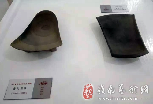 有弧形砚面的唐代箕形端砚和歙砚,从出土报告看,造型扁平者为早中唐,造型高深者为盛唐。经量子能量测试仪将扁平者和高深者比对检测,与出土报告对唐代箕形砚不同时期特点的描述一致。