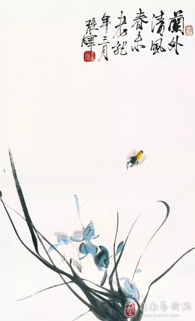 第三点,在花鸟画的笔墨语言上,他追求秀逸与凝重。无论是兰草还是竹叶,他学吴昌硕、齐白石、潘天寿,但是他又有自己的笔墨语言和体会。张晖把二王一路的笔法与以碑入书的骨力有机结合,形成了非常秀逸、凝重苍茫的笔墨路径。