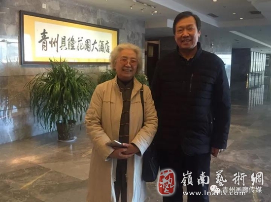 郎绍君夫妇书画展将在旷远斋举行。得知郎先生与夫人提前到达,11月10日晚,在朋友马游泳带领下,去青州贝隆大酒店拜访了郎绍君夫妇。敲门,郎夫人开门迎接。进门,高贵大方,温文尔雅的郎夫人非常热情地招呼我们落座。郎先生正在休息,郎夫人进屋轻轻地说:“有客人来了”。