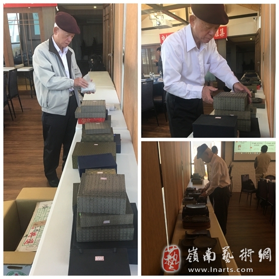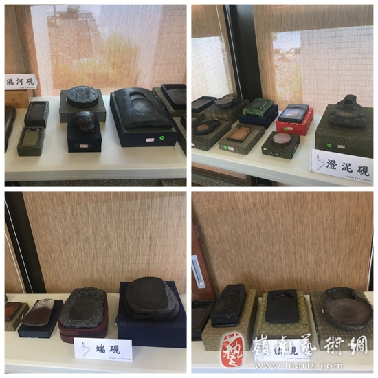 上午九点,“中轴线▪泼墨舞蝶”品砚雅集布展中,古今佳砚,荟萃一堂。