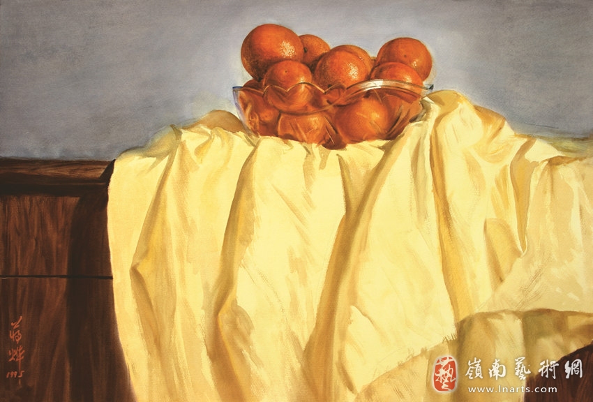 黄布上的橘子