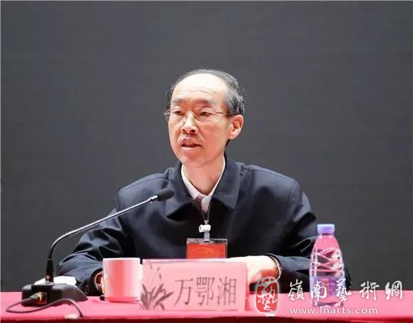 习近平总书记在十九大报告中指出,社会主义文艺必须坚持以人民为中心的创作导向,深入生活、扎根人民进行无愧于时代的文艺创造。万鄂湘在讲话中强调,这为新时代文艺发展指明了方向,也为民革做好书画工作提供了根本遵循。