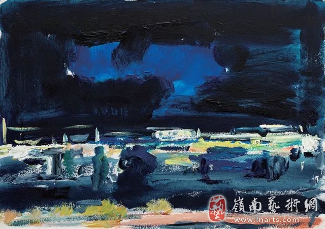 《米洛斯-波洛尼亚的夜》36x50cm 布面油画 2017