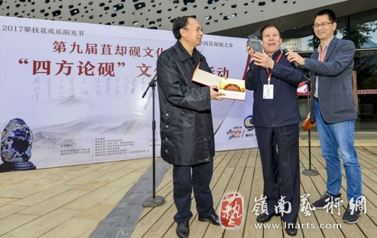 2017年12月16日至18日,第九届苴却砚文化艺术节暨“四方论砚”文化交流活动在四川省攀枝花市隆重举行,全国政协委员、中华炎黄文化研究会砚文化联合会名誉会长刘红军,执行会长兼秘书长唐本高,专家团队姜书璞、高星阳、王祖伟、石飚、胡中泰、曹加勇、华慈祥、吴笠谷,常务副秘书长兼外联部长阴巍等砚文化联合会领导和专家应邀出席。攀枝花市有关领导和全国砚种专家学者参加活动。这次“四方论砚”活动是由攀枝花仁和区委、区政府主办,内容丰富,全国知名砚种专家在一起进行交流、研究,建言献策,必将有力促进苴却砚的健康发展,为中华砚文化的宣传弘扬作出贡献!