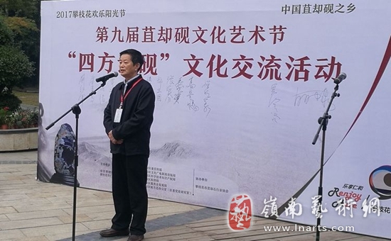 唐本高执行会长在开幕式上代表联合会致辞,高度赞扬攀枝花市各级政府对砚文化的大力支持,充分肯定了苴却砚发展所取得的成绩,同时介绍了砚文化联合会的性质宗旨,表明了联合会弘扬砚文化的决心和态度。刘红军会长向苴却砚博物馆赠送了“飞天砚”,并围绕“苴却砚的传承与发展”作了主题演讲,阐述了苴却砚的发展历程,从全局的高度分析苴却砚面临的形势,有针对性地提出了苴却砚创新发展的意见建议。