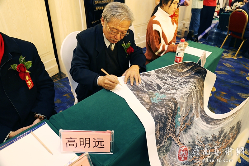 (著名山水画家高明远老师为粉丝进行版画签名)