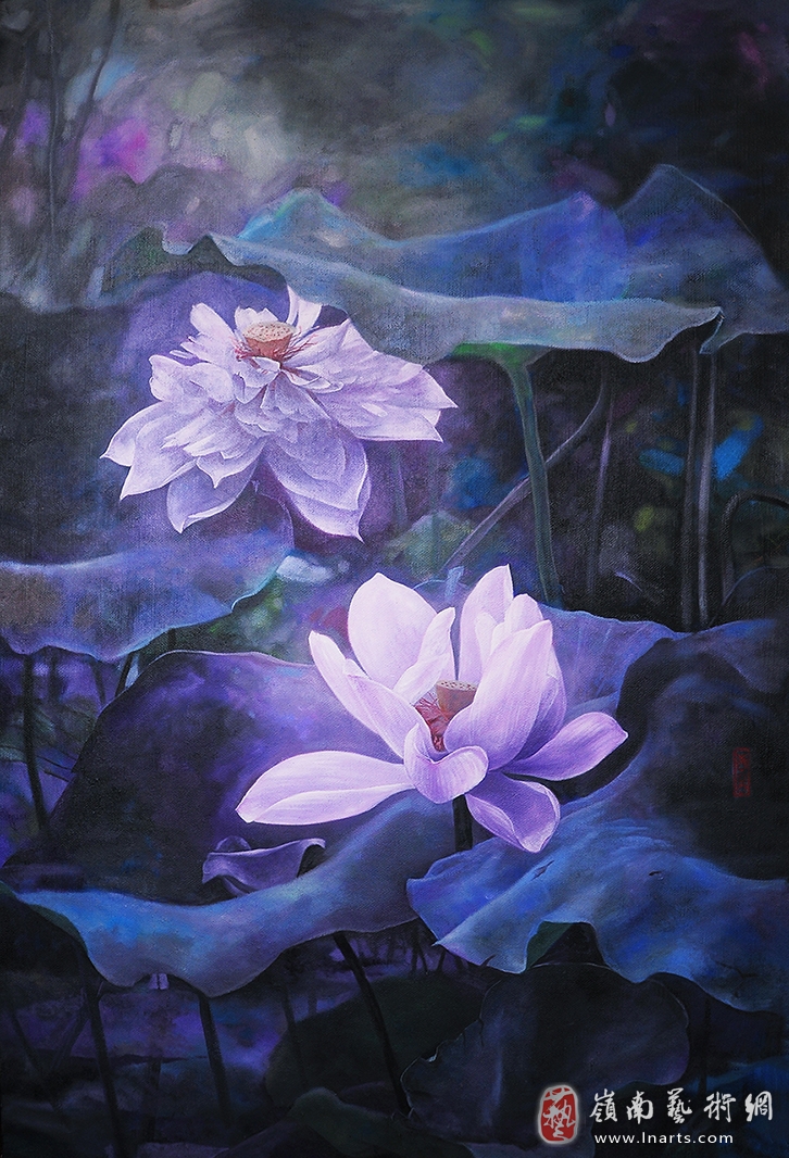 西茜老师作品大多以莲花为主,不依赖客观事物也不借助数码合成,将超现实与超写实相结合,以西方油画形式展现东方的哲思与禅境。近年来作品频繁亮相国际知名展览及大奖赛,被中外博物馆及个人收藏,有外媒称其为“用油画表现东方智慧的中国天才女画家”。